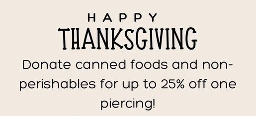 Don't want a piercing but want to donate? All are welcome to donate non-perishable food items through the end of the month!
